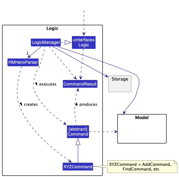 Logicis called upon to execute a command, it uses theHMHeroParserclass to parse the user command. - This results in a